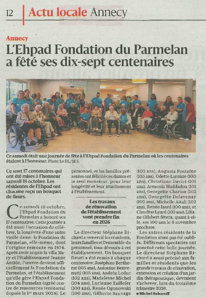 • L’Ehpad Fondation du Parmelan a fêté ses dix-sept centenaires